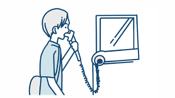 息を吸ったり吐いたりして、肺の働きや空気の通りやすさを調べます。